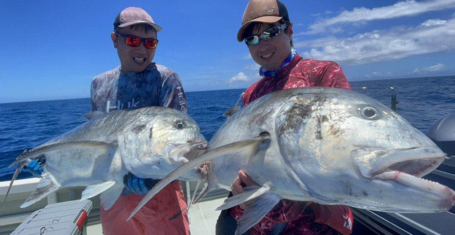 ・8フィート前後GTキャスティングロッド / 10,000番以上スピニングリール / ライン:PE5号以上 / リーダー:ナイロンまたはフロロカーボン100lbs.前後 / GTポッパー、ペンシルなど